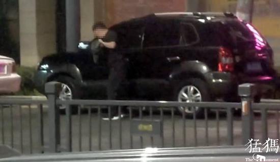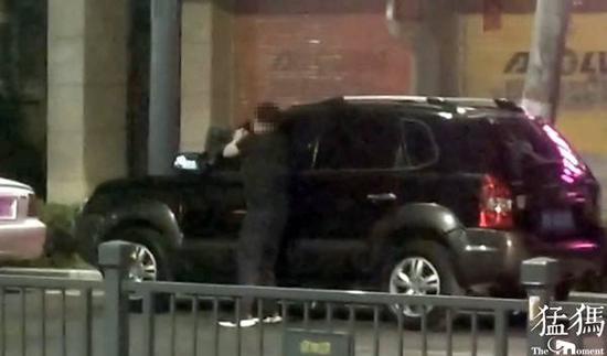 夜間街頭,男子一邊砸車一邊大喊大叫,其行為引起路人的注意,但一時間無人敢于上前勸阻。