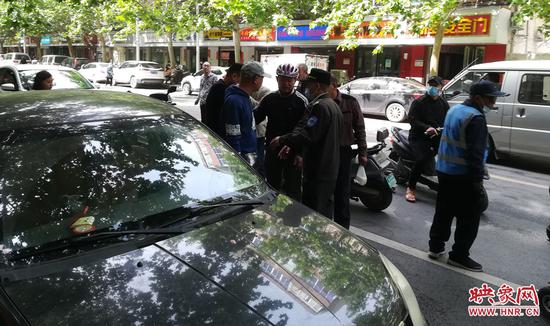 映象網訊(記者 邱延波 通訊員 李四信 文/圖)8日上午,鄭州市經八路上,一家早餐店老板擔心門口停車會影響自己的生意,便讓員工將電動車停放在汽車停車位上。一名車主好不容易看到這個停車位,問了幾聲是誰的電動車沒有應答后便將電動車挪開,結果,電動車車主現身了,這名車主據理力爭,結果險些被群毆,好在被巡防隊員和路人極力勸阻,避免了事態升級。