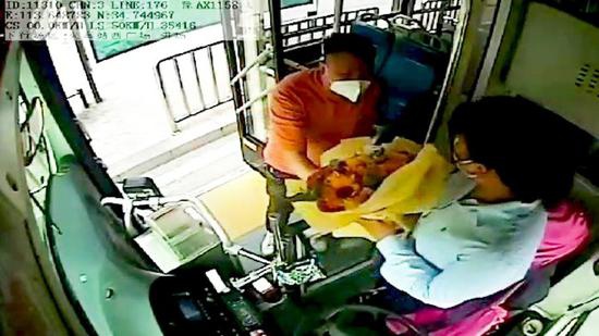 當車輛行駛到火車站西廣場的時候,乘客們陸續下車,但這位男乘客卻手抱鮮花朝車頭方向走去,一直走到孟棟棟座位旁,男乘客靦腆地說道:“美女你好,我能給你說個事兒嗎?”孟棟棟見男乘客過來詢問,以為是有什么事情,便回答:“怎么了?老師?”男乘客不好意思地說道:“我經常坐你的車,已經關注你很久了,挺喜歡你的,咱倆試著交往一下吧?”孟棟棟聽到這里,趕緊婉拒并告訴這位男乘客自己已經結婚而且有了孩子。
