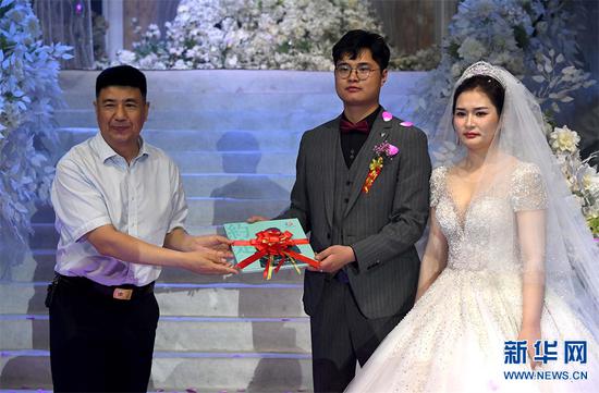 5月20日,劉光耀(右)、喬冰在婚禮上。