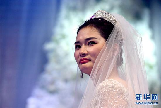5月20日,喬冰在婚禮上回望父母。新華社記者 李安 攝