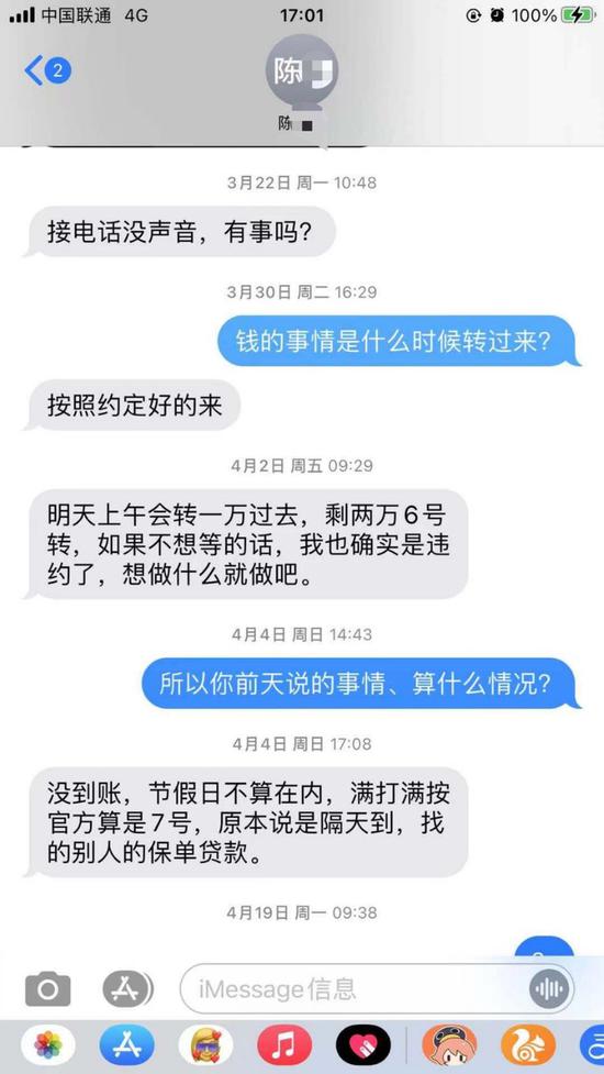 5月21日,記者再次通過短信與娜娜溝通希望能進行電話或者視頻采訪,對方對記者提出的陳先生曾得知娜娜在談戀愛期間是已婚狀態,兩人約定好還款時間一直未還款等問題短信回應稱:“第一個問題,知情。情況復雜而已。第二個問題,有爭議,等開庭。”