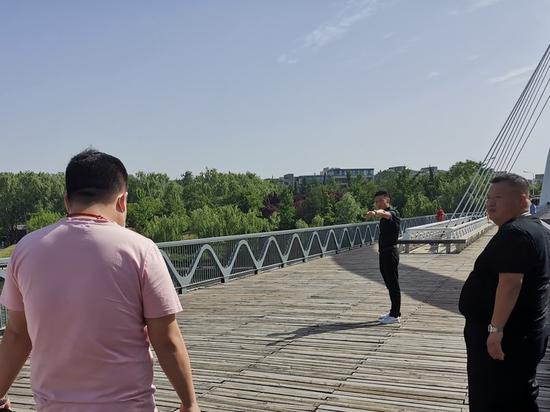 上午8點10分,一名女子默默站在鄭州市九如東路與黃河東路的蝴蝶橋邊,過路的人來來往往,但沒有人覺察到女人的異常。上班路過此地的鄭州市公安局鄭東分局商務區(qū)派出所教導員王月華不經意間瞥了女人一眼,發(fā)現女人站在蝴蝶橋的外沿,手里還拿著把刀。職業(yè)的敏感性讓他迅速警覺了起來,他開始試著與女子交流。