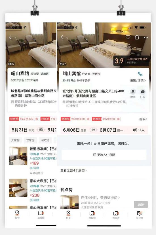 經歷過考試搶房大戰(zhàn)的楊女士向記者表示:“他內個店,本來應該就是七十多塊錢,然后我當時定的時候已經是一百五了,我是可早就定了,基本上都訂滿了,唯一沒訂滿的已經漲到三百多了。”