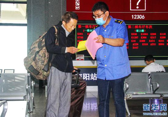 6月16日,南陽火車站站前廣場,工作人員向旅客講解安全知識。