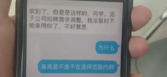 原標(biāo)題:《鄭州小伙面試成功后又被拒 僅因身高1米56?公司回應(yīng)了》