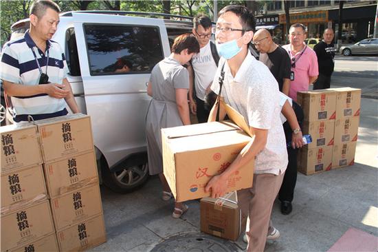 由于石某拒不配合檢查,執(zhí)法人員立即與當(dāng)?shù)毓矙C(jī)關(guān)聯(lián)系派人協(xié)助查處工作。公安人員到現(xiàn)場(chǎng)后,責(zé)令老板立即把車(chē)門(mén)打開(kāi),在車(chē)?yán)铮植槌隽艘幌渫瑯拥拿┡_(tái)酒。經(jīng)過(guò)廠(chǎng)方打假人員現(xiàn)場(chǎng)鑒定,也是假酒。此外,執(zhí)法人員在店里檢查時(shí),還發(fā)現(xiàn)了兩箱漢醬酒,經(jīng)鑒定也是假的。