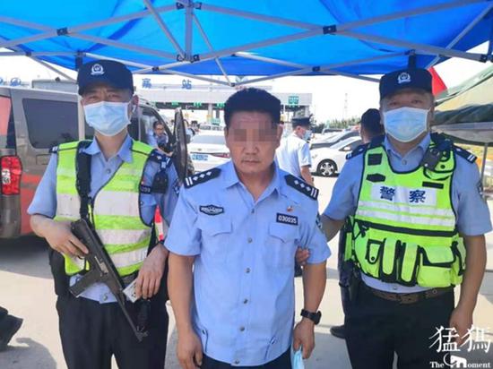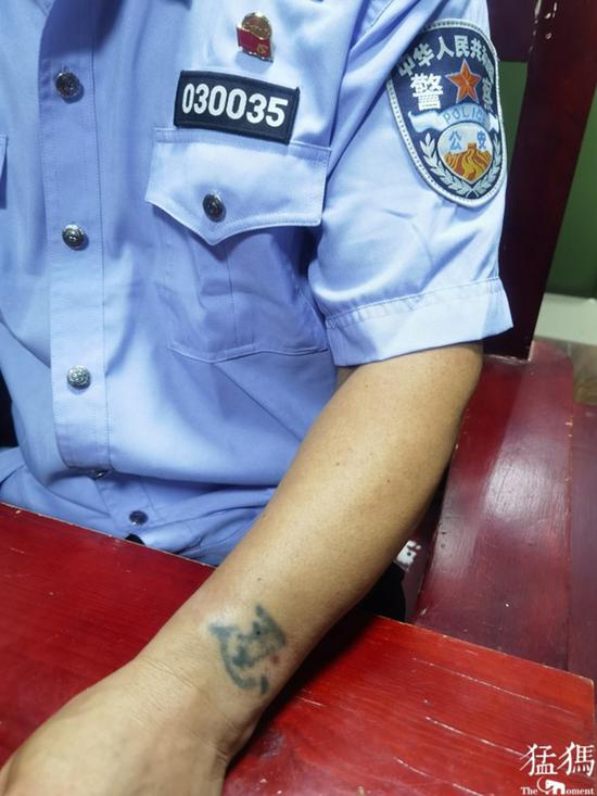 6月26日上午10時許,鄭州市公安局二七分局巡特警大隊民警正在繞城高速侯寨站點執勤,民警在對一輛鄭州開往平頂山的大巴車進行檢查時,發現大巴車上端坐一位警長級別的領導,這位民警肩上的警銜是一級警督,警號、警徽一應俱全,就連黨員民警佩戴的黨徽都配備齊全。當民警走近這名警長時,他微笑地抬手和民警主動示意,民警卻發現其左手腕處竟有一個“忍”字紋身,這是真警察不會有的。民警禮貌詢問道:“你是哪個單位的?”誰知,警長非常緊張的說:“交警隊的!”再詳問其具體單位,警長卻支支吾吾答不上來。