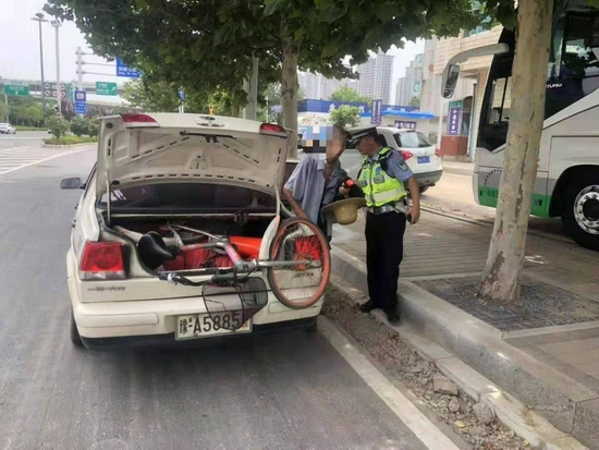 2021年7月10日上午11時30分,鄭州交警三大隊民警劉偉、趙宛沿南三環(huán)快速路二層由西向東巡邏至紫荊山路附近時,發(fā)現(xiàn)一位老人推著共享單車在高架上向東行走。為保障老人的人身安全,兩位民警立即停車上前了解情況。經(jīng)溝通得知,老人名叫孫某某,今年77歲了,老家在河南南陽,目前在鄭州二兒子家居住看病,因為思鄉(xiāng)心切,在沒有和鄭州家人打招呼的情況下準備自己騎自行車回南陽老家。兩位民警征得老人同意后把自行車放到后備箱內(nèi),讓老人坐上警車,將人車帶至南三環(huán)中州大道西南角安全地帶。隨后,兩位民警繼續(xù)安慰老人,勸老人和孩子好好溝通,不要一個人冒失地回老家。后來老人想通了,提供了兒子的電話,民警及時聯(lián)系上老人兒子,囑咐其將老人接走并照顧好自己的父親。接走老人時,老人和家屬向兩位認真負責(zé)的民警同志表示感謝!