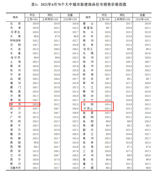 原標(biāo)題:《6月70城房?jī)r(jià)公布!55城環(huán)比上漲,鄭州漲0.8%》