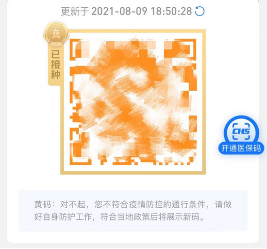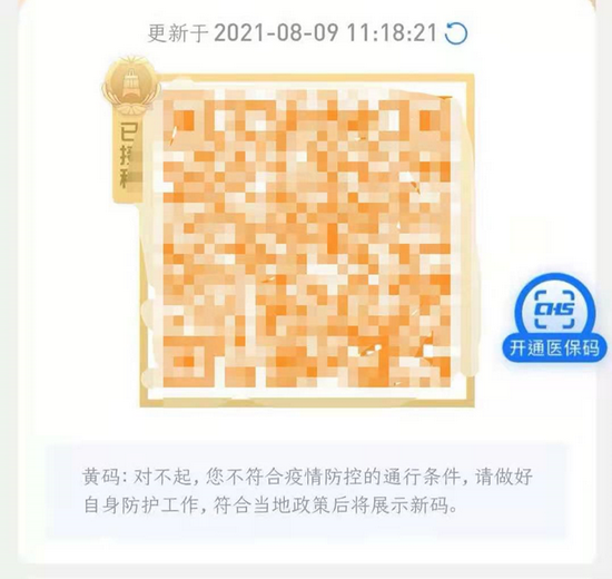 邢先生表示,他們小區屬于封控區,高風險地區他也沒去過,自從封控以來,他的活動范圍就在小區門口和家之間,“碼變黃了,我也可恐慌。”