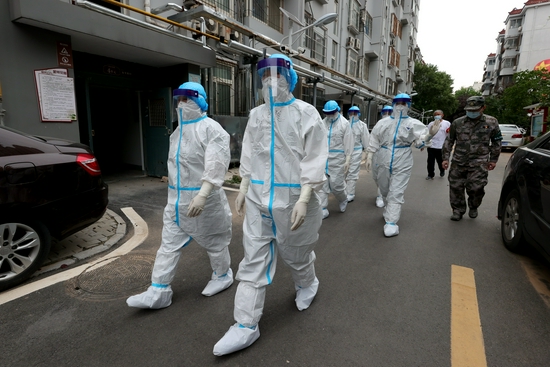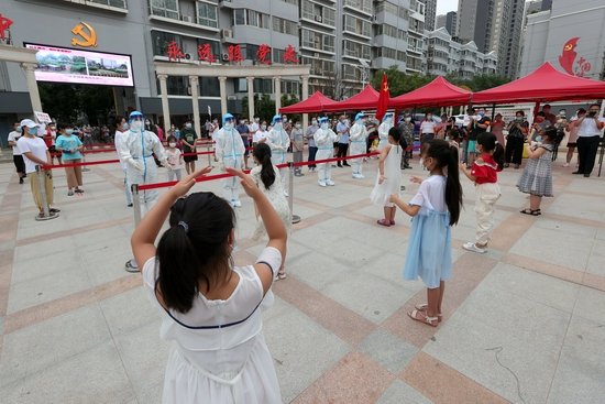 8月10日,鄭州市對重點人群進行核酸檢測。下午,鄭州市金祥花園小區居民們迎來了一群特殊的核酸檢測人員,他們是來自中國人民解放軍聯勤保障部隊第九八八醫院的醫護人員。