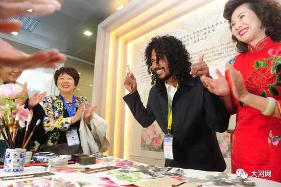 “給我剪只兔子!”“我要剪朵牡丹!”在剪紙展臺(tái),90后的洛陽市非物質(zhì)文化遺產(chǎn)代表性傳承人暢楊楊身邊圍滿了中外嘉賓。他一邊介紹,一邊不停地進(jìn)行剪紙創(chuàng)作。來自巴基斯坦黎明電視臺(tái)的記者艾迪哈吉·哈桑認(rèn)真觀看了剪紙過程,他對記者感嘆道:“中國每個(gè)地域的文化都是獨(dú)特的,河南文化讓我十分感興趣!”