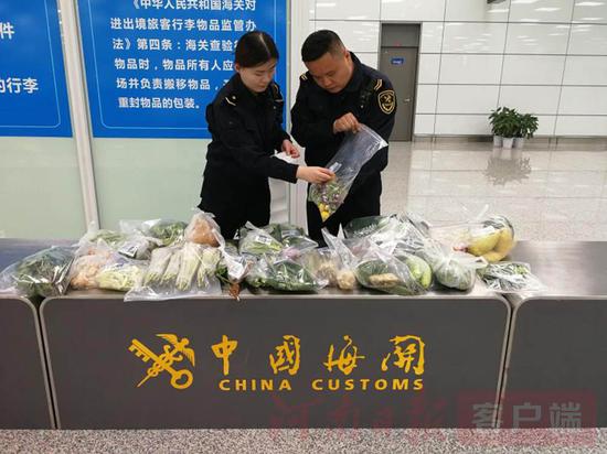 記者從鄭州海關獲悉,4月22日,鄭州海關在新鄭國際機場旅檢入境通道查獲大量入境果蔬,為河南口岸單次截獲果蔬品種、重量最多的一次。