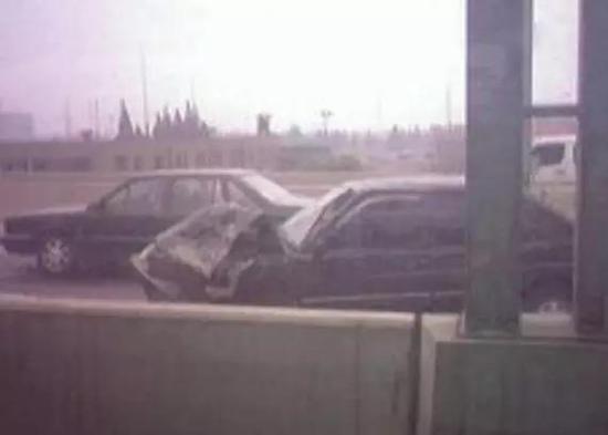 ▲電動(dòng)三輪車(chē)在高架上被撞散