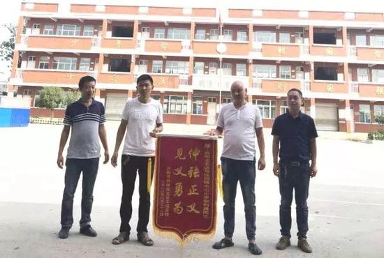 送錦旗表達(dá)對(duì)靳利勇老師(左二)的感激之情