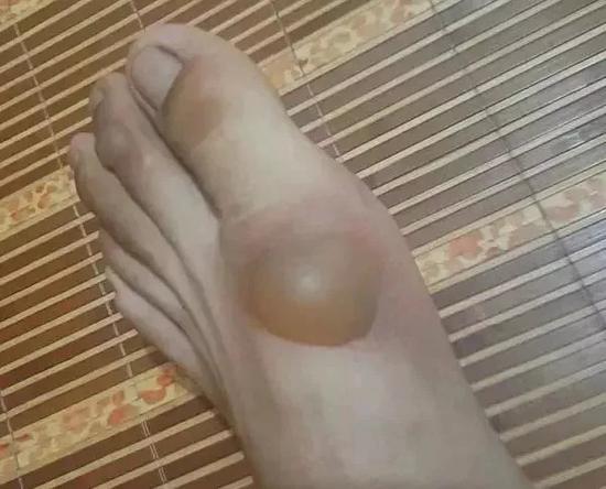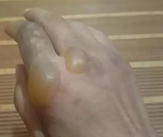 燙傷部位起了大大小小的水泡。