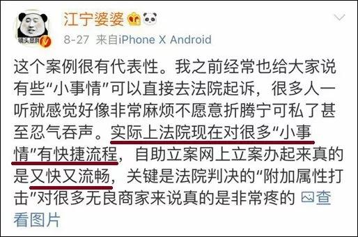 網友葉子說,“這不是錢的事也不是閑的,就是因為我們很多消費者抱著息事寧人的態度,才讓店家猖狂,多一些像你這樣的人,店家就不敢忽視了”,同時網友也點贊受理這個案件的法院:“這法院的態度簡直可以做全國學習榜樣!”