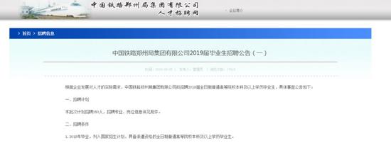 9月5日,中國鐵路鄭州局集團有限公司人才招聘網發布公告,擬招聘2019屆全日制普通高等院校本科及以上學歷畢業生150人。