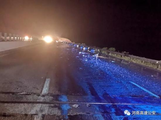 見此危險情況,民警立即同現場路政人員開始進行大面積清理,防止二次事故的發生,道路能夠及時恢復正常通行。
