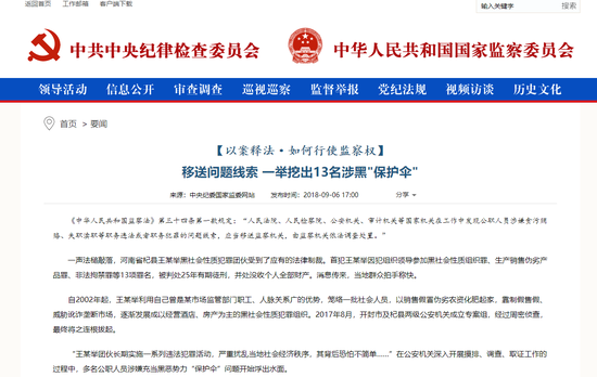 原標(biāo)題:《移送問(wèn)題線索,一舉挖出13名涉黑“保護(hù)傘” 》