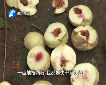 周師傅說,如果沒生蟲,他這桃子五六塊錢一斤,那是輕輕松松。現(xiàn)在這些桃子雖然外觀看起來不影響銷售,但是昧心賺錢的事兒他干不來。