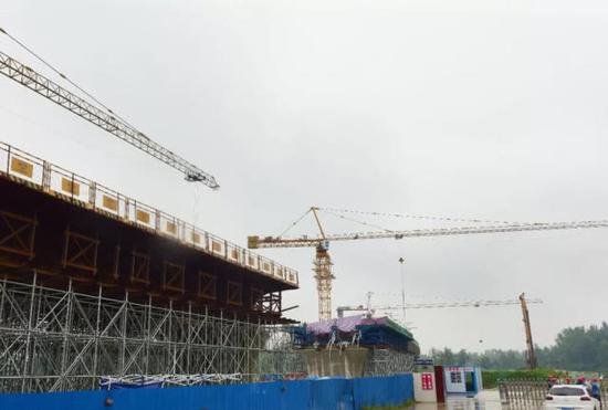 據(jù)了解,迎賓大道(濱河西路-豫州大道)段位于港區(qū)東西向主軸線上的快速通道上,也是機(jī)場(chǎng)至鄭州南站唯一的快速通道,上跨在建鄭萬(wàn)高鐵、機(jī)場(chǎng)至鄭州南站城際鐵路及5條規(guī)劃城際鐵路(蘭考至鄭州南鐵路上行線、蘭考至鄭州南鐵路下行線、鄭州南至大關(guān)莊三四線、蘭考下行聯(lián)絡(luò)線、蘭考上行聯(lián)絡(luò)線)。高架橋橋梁總長(zhǎng)496.7米,地面和高架均為雙向八車道,東端接豫州大道全互通立交橋,西端接冀州路部分互通立交橋。目前,項(xiàng)目工地已完成標(biāo)準(zhǔn)化建設(shè),旋挖鉆機(jī)已進(jìn)場(chǎng),正在抓緊進(jìn)行樁基施工。