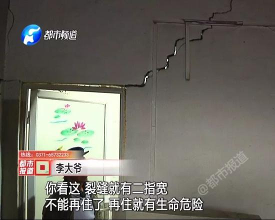 搖搖欲墜的墻壁、巴掌寬的裂縫、塌陷的地基,這可不是什么陳年老房,而是剛建好一年多的新房。這里就是鄭州市南曹鄉馬李莊村的拆遷安置房,村里65歲以上的老人,就在這樣的房子里,已經擔驚受怕住了一年多。