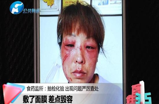 嚴女士告訴特派員,她在中原第一城買的面膜,頭一天晚上敷完后,第二天早上臉上開始紅腫,差點毀容!