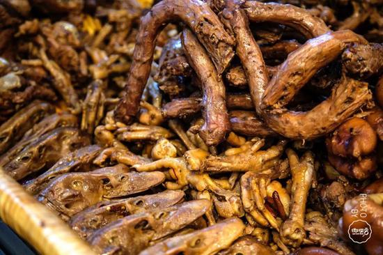 羊蹄豬腳,每個人都無法拒絕的誘惑。勁道彈牙的口感,每一口都感覺自己的牙齒在跳舞。富含豐富的膠原蛋白,更是愛美的靚女帥哥的最愛。四廠的羊蹄膻味稍重,不喜羊膻味的朋友要謹慎選擇。和普通鹵味不一樣的雞爪,既有平時所喜歡的鹵味,又配以各色香料,醇香而不油膩。