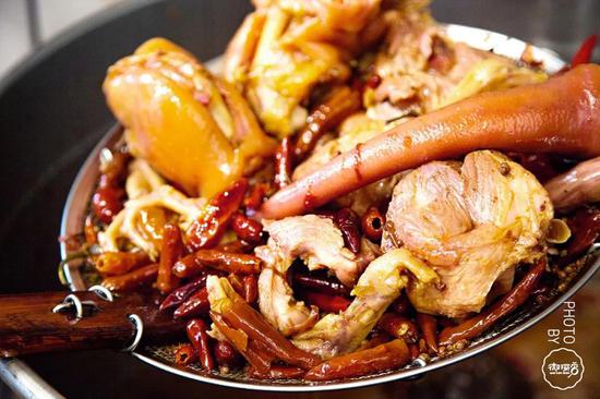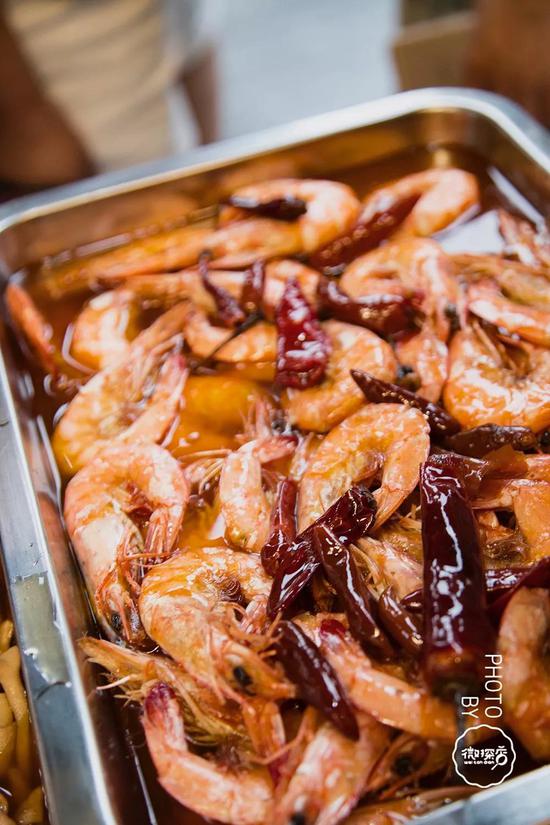 還有紅亮亮的色澤,鍋里的辣椒多是子彈頭辣椒,還有從四川空運而來的配料,保證了真正的辣味鮮明正宗。全透明的工作坊哦,撈出后直接擺放好現賣,整個過程都能看見~
