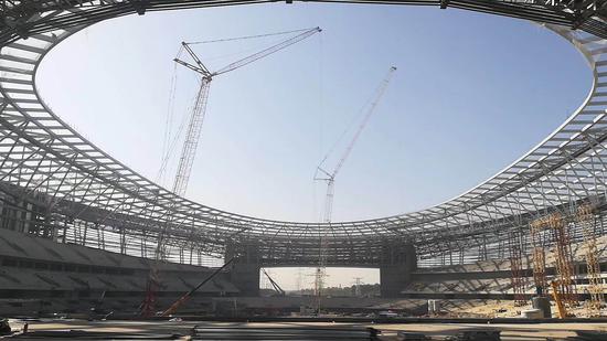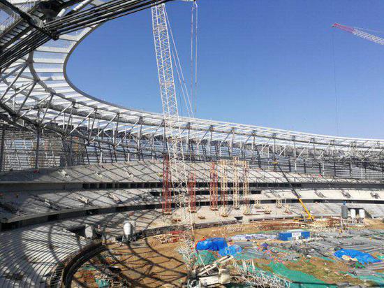據鄭州奧體中心體育場責任工程師靳朝陽介紹,目前體育場項目主體結構和鋼結構已完工,僅剩安裝、裝飾、路面、綠化等作業,施工進入沖刺階段。