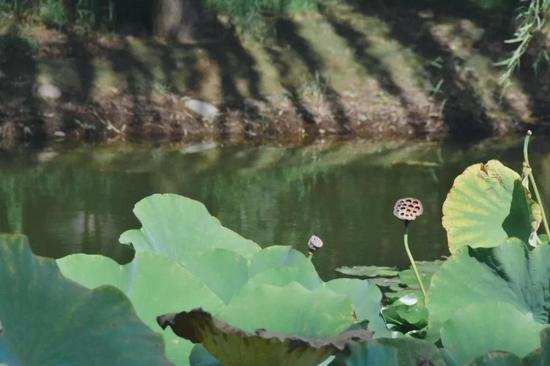 秋水共長天一色,微風拂過卷起陣陣漣漪,東湖亭子里自習的人在安靜地看著書,看累了就看會兒湖。長椅上的情侶沒有言語,女孩在拍荷葉,男孩在看女孩。