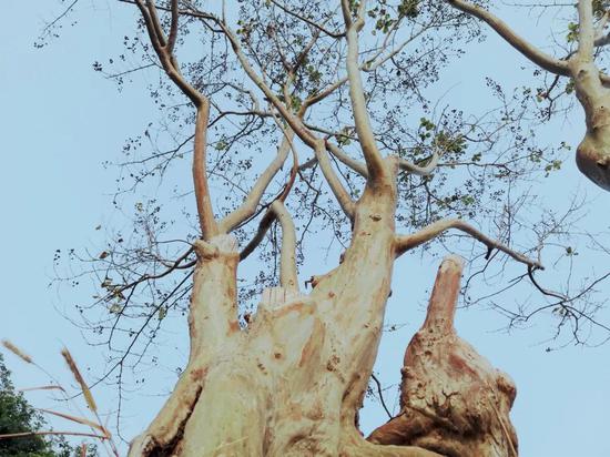 透過密密的樹葉,