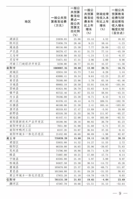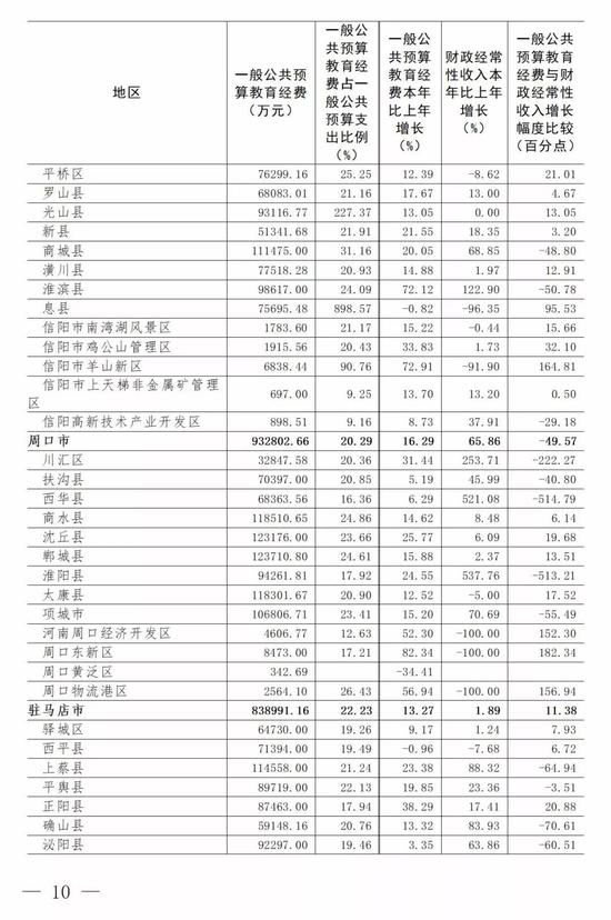 (5)全省普通高等學校為7112.47元,比上年的6778.87元增長4.92%。增長最快的省轄市是信陽市(358.08%)。