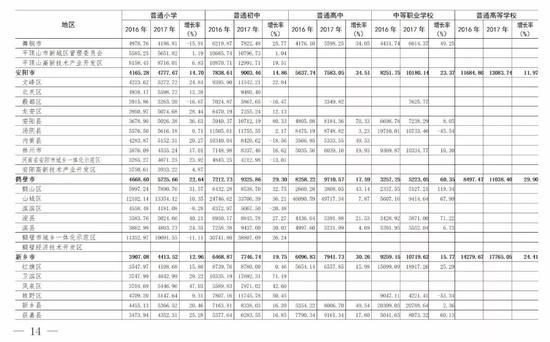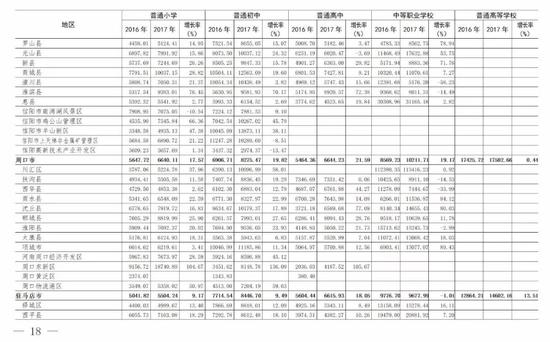 (4)全省中等職業學校為3811.34元,比上年的3610.42元增長5.57%。增長最快的省轄市是鶴壁市(42.87%)。