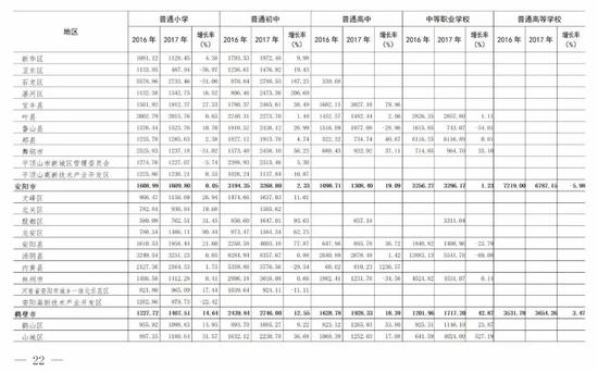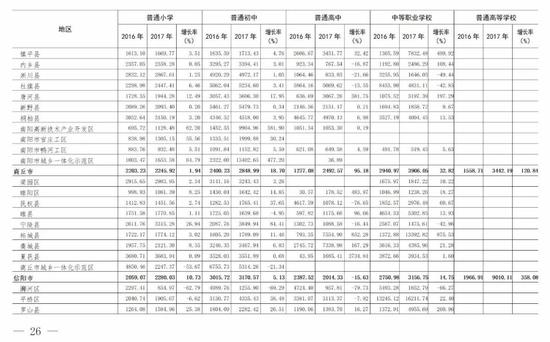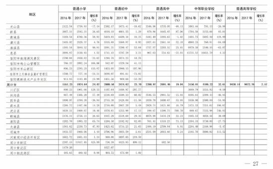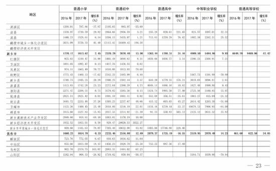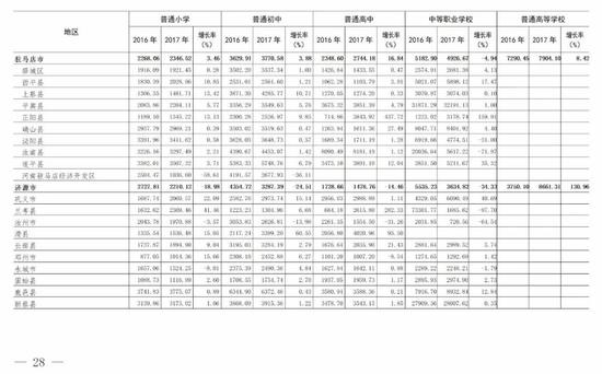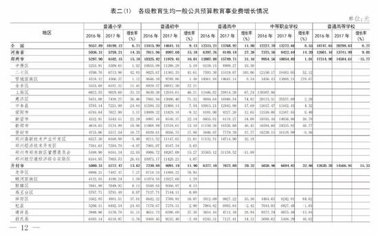 (5)全省普通高等學校為13741.99元,比上年的12601.16元增長9.05%。增長最快的省轄市是三門峽市(161.21%)。