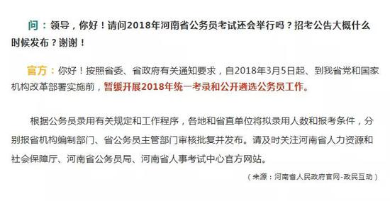 河南省暫緩開展2018年統一考錄和公開遴選公務員工作
