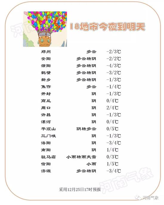 今天夜里到27日,全省陰天,黃河以南大部分地區小雨轉雨夾雪或小雪,西南部、南部部分地區有中雪。28日,南部陰天有小雪;其它地區多云間陰天。