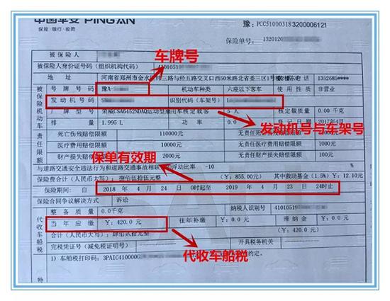 (4)、保單上要顯示有代收的車船稅,如果車船稅沒有和交強險一起購買的話,請到地稅局購買。