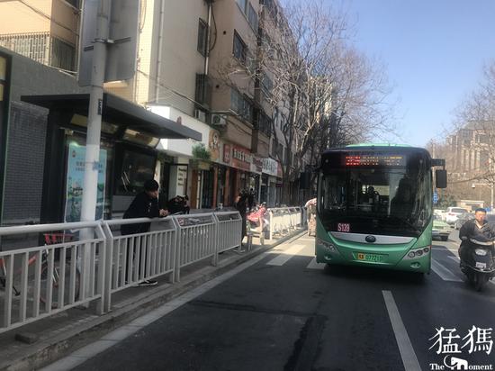 記者在現場看到,盡管公交站內的兩個公共停車位已被取消,但由于公交車身較長,車輛仍無法順利的進站停靠。據S115路公交車長王師傅說,公交站兩側需要留出一定的距離才能保障公交車順利進站和市民的安全上車。