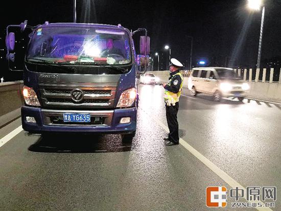 5月5日23時53分許,鄭報融媒記者跟隨高架大隊民警在隴海快速路高架橋流動巡邏,當行駛至隴海高架未來路時,發現一輛津A車牌輕型貨車違法上高架闖禁行,遂對該車喊停。