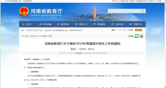 映象網(wǎng)訊 (記者 陳偉然)5月16日,河南省教育廳下發(fā)《關(guān)于2019年普通高中招生工作的意見》(簡稱“《意見》”),明確了今年我省普通高中招生政策。今年全省普通高中計劃招生73萬人,招生考試仍與初中學(xué)業(yè)水平考試合并進(jìn)行,三學(xué)科命題標(biāo)準(zhǔn)或范圍有所調(diào)整。