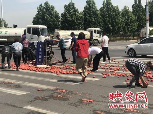 映象網漯河訊(記者 楊增強 實習生 陳震宇)“真沒想到這灑落一地的700多斤西紅柿一會兒就被好心市民收拾干凈了,以前總聽說有人遇到這種情況發生哄搶,而他們不但沒有他一個人往兜里裝,還都幫我往車上收拾。”5月20日下午,周口菜農宋老漢提及這感人一幕,感動的幾欲落淚。