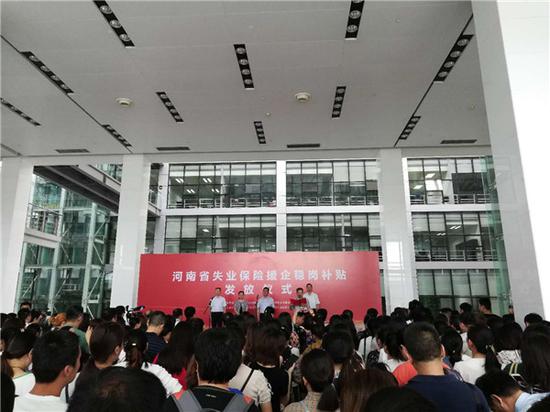 6月25日上午,省人力資源社會保障廳、鄭州市人民政府聯合在鄭州舉辦失業保險穩崗返還補貼發放儀式。現場為10家企業發放穩崗補貼1.55億元。