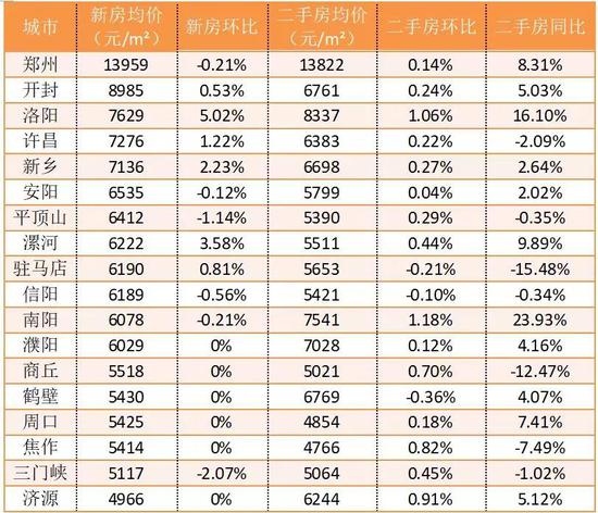 由統計數據可見,河南各個地市當前房價數據情況如下: