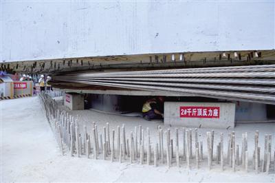 橋梁成功轉體的其中一座千斤頂 鄭報全媒體記者 王秀清 圖