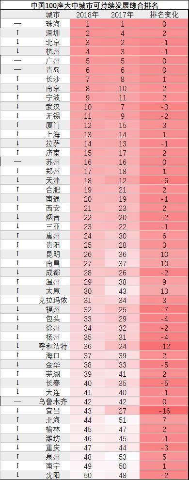 報告還對2018年中國100個大中城市可持續發展指標體系數據做了驗證分析并指出,作為中國經濟最發達地區,深圳、北京、珠江三角洲城市群及東部沿海城市的可持發展排名依然比較靠前。