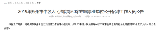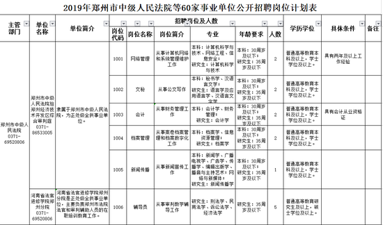 政策咨詢電話詳見《2019年鄭州市中級人民法院等60家事業