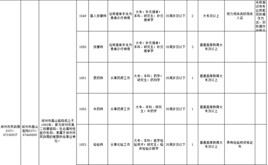 ?。ㄒ唬┚W上報名(鄭州市嵩山醫院盲人按摩師1049崗位除外)。